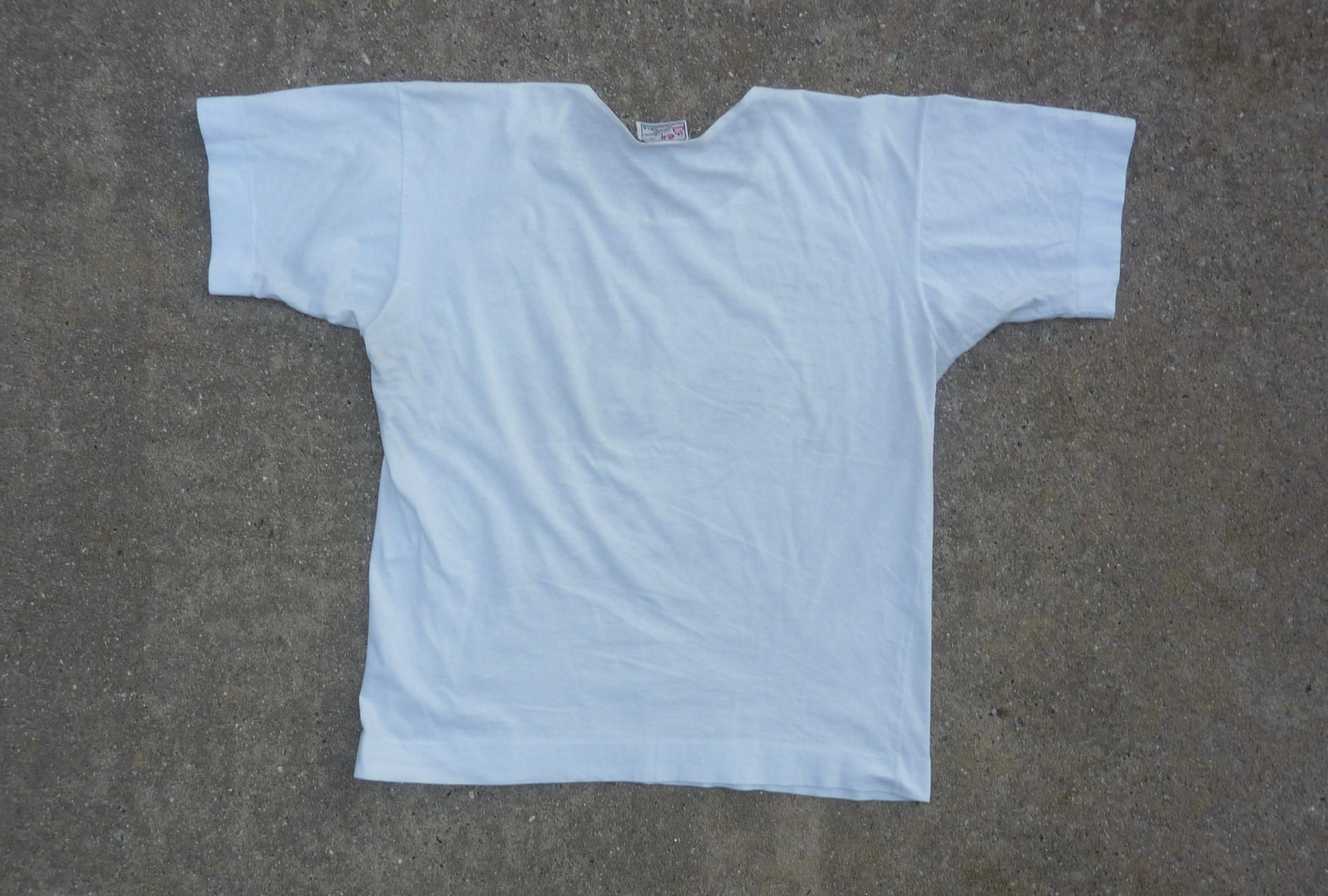 on a double swan blank which mean it’s got thick hems and a wide neck and a different feeling cotton.